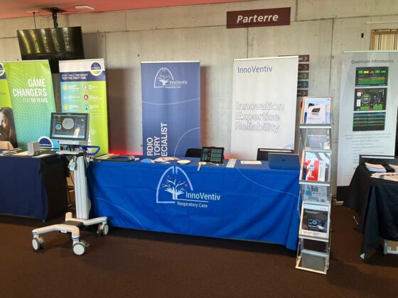 The picture is showing Innoventiv presenting the Pain-Nociceptive sensor at the 27th CCI symposium in Bruges, Belgium